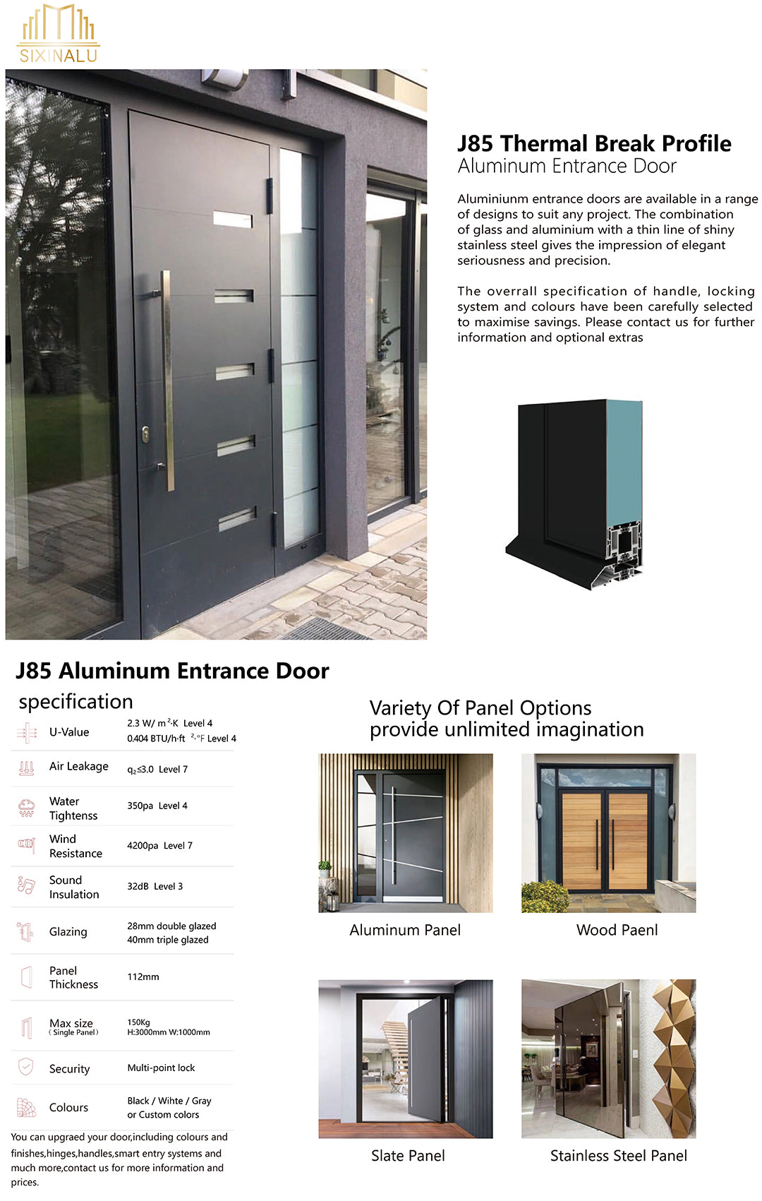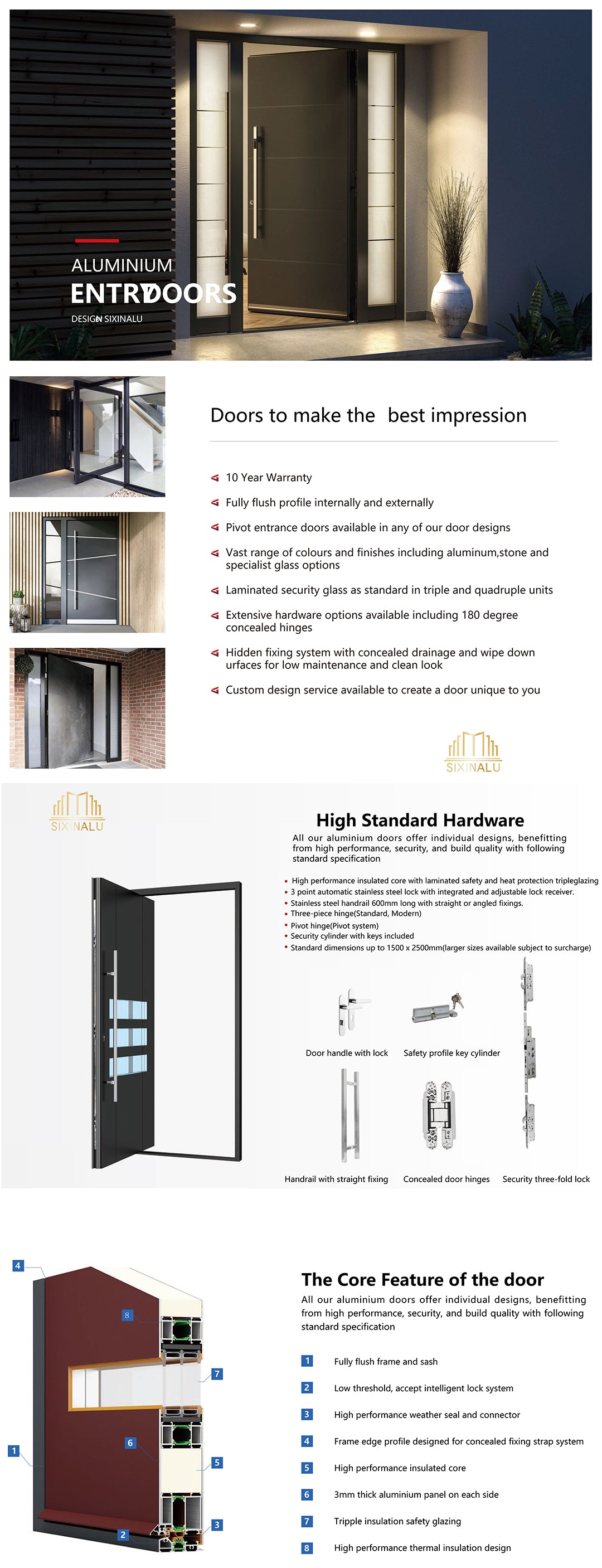 Sixinalu New Design Aluminum Alloy Profile Building Material Slate Panel Metal Pivot Entrance Front Door